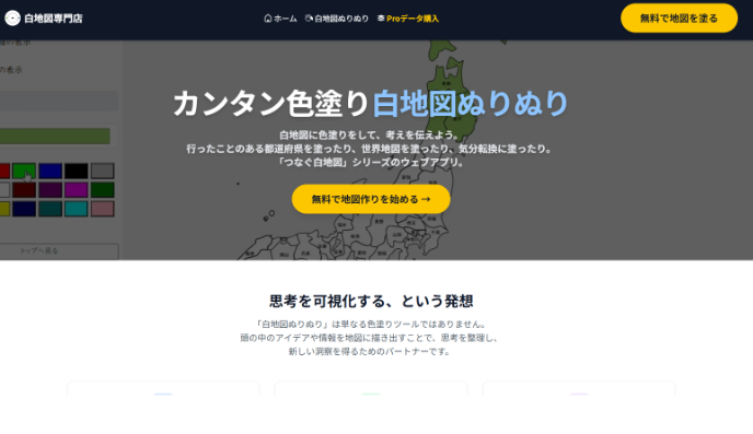 2006年にインターネット上で白地図を専門に取り扱うウェブサイト「白地図専門店」の運営を開始いたしました。